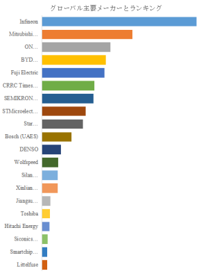 LP Informationのトップ企業研究センターによると、IGBTおよびSiCモジュールの世界的な主要プレイヤーには、Infineon、Mitsubishi Electric、ON Semiconductor、BYD Semiconductor、Fuji Electric、CRRC Times Electric、SEMIKRON Danfoss、STMicroelectronics、Star Semiconductor、Bosch (UAES)などが名を連ねる。2025年時点で世界トップ10企業は売上の約77.0%を占め、市場の集中度が非常に高い特徴を呈している。