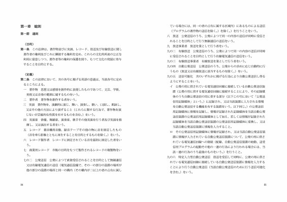 本年4月1日改正の新著作権法から旧著作権法まで全文掲載し、著作権法の全容を知ることができる。