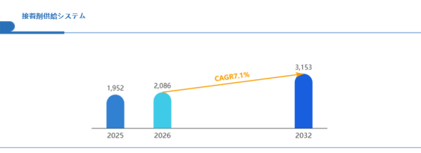 接着剤供給システム市場は、製造業における自動化の進展と接着技術の高度化を背景に安定した需要基盤を形成している。製品設計の高度化により、従来の機械的接合だけでなく接着による接合技術の重要性が高まっており、それに伴い接着工程を支える設備の需要も継続している。
