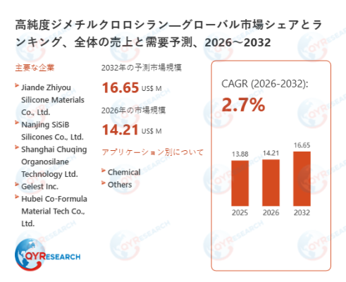 高純度ジメチルクロロシランの技術特性・主要仕様を整理し、世界市場における売上高、販売数量、市場規模、価格推移を時系列で分析します。あわせて、成長促進要因、事業機会、想定リスク、参入障壁などを総合的に考察します。