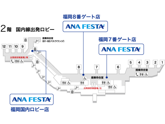 ※ANA FESTA福岡国内ロビー店は改装工事のため、3月17日(火)まで仮設店舗にて営業中です。