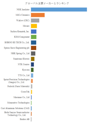 LP Informationの企業データによれば、ウェハヒーターの世界的な主要製造業者としてNGK Insulator、MiCo Ceramics、Watlow (CRC)、Mecaro、Suzhou Kematek, Inc.などが挙げられる。2025年時点でトップ5社が売上の約66%、トップ10社が約81%を占める高集中構造を示している。この集中度は、プロセスごとに異なる要求特性に応えるための製造ノウハウと品質管理力の差が市場競争の主因であることを示す。上位企業群は、熱応答性・温度均一性・材料耐久性の同時実現を目的に、セラミック焼結や薄膜パターン形成などの垂直統合型生産体制を確立している。一方で新興メーカーは、低コスト領域や特定用途に焦点を当てた差別化戦略でニッチ市場を形成しているが、依然として上位勢が品質面・納入実績面で圧倒的な優位を維持している。