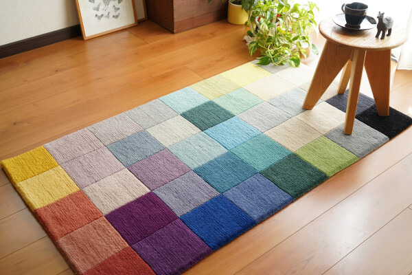 40色の洗練された配色が目を引く唯一無二のカラーブロックラグ。