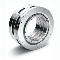 コンプレッサー用ドライガスシールとは、遠心圧縮機やターボ圧縮機において、回転軸と固定部の間に非接触状態でガス膜を形成し、プロセスガスの外部漏洩を防止すると同時に摩耗を最小限に抑える高性能シール装置である。従来のオイルシールと異なり、潤滑油を使用せず、微小なガス圧力差によって形成される流体膜により密封機能を実現する点に特徴がある。これにより、システムの清浄性向上、エネルギー損失の低減、保守負荷の軽減が可能となり、石油・ガス、化学、発電など高信頼性が求められる産業分野において不可欠な要素技術として位置付けられている。