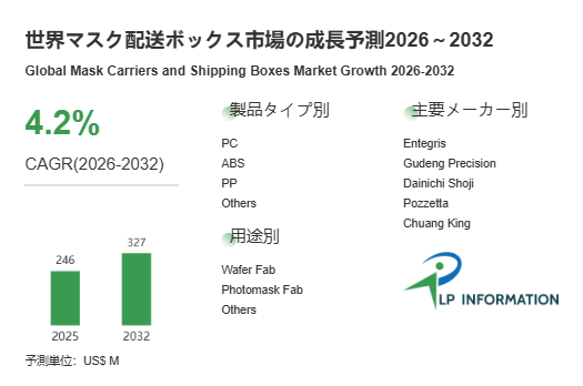 LP Information調査チームの最新レポートである「世界マスク配送ボックス市場の成長予測2026~2032」(https://www.lpinformation.jp/reports/599174/mask-carriers-and-shipping-boxes)によると、2026年から2032年の予測期間中のCAGRが4.2%で、2032年までにグローバルマスク配送ボックス市場規模は3.27億米ドルに達すると予測されている。市場は成熟期へ移行しつつある。成長を制約する要因としては、初期導入コスト、保守運用の手間、地域ごとの設置規制や安全基準の差異が挙げられる。さらに、バッテリー駆動やセンサー機能の信頼性確保、ソフトウェア連携の標準化といった技術的課題も存在する。しかし、これらは参入企業にとって技術力やサービス力の差別化要因となり、市場の長期的な安定性を支える役割も果たす。結果として、市場は量的な拡大だけでなく、品質と運用効率を重視する方向に進化している。