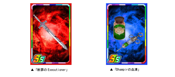 ダンジョンのボスモンスターを倒すと、まれに新たな限定子分カード「断罪のExecutioner」「Dhampirの血清」が手に入ります。このカードを複数枚集めると進化させることができ、子分スキルの効果が強力になります。
