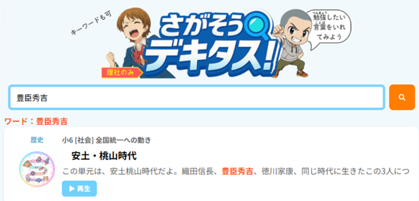 学習において、もっとも大切なのは「興味を持ったその瞬間」に答えにたどり着くことです。ただ、膨大な学習教材の中から今の自分に必要な一場面を探し出すのは大人でも骨が折れる作業です。新機能「さがそうデキタス」は、授業動画のナレーションを文字化し、言葉からダイレクトに授業を探せる画期的な検索システムです。この機能により、理科や社会の気になる用語も、まるで辞書をひくような感覚で、プロ講師のわかりやすい解説動画にたどりつけます。自分で答えを見つけられたという成功体験は、子供たちの「自立して学ぶ力」を育み、揺るぎない自信へとつながっていきます。