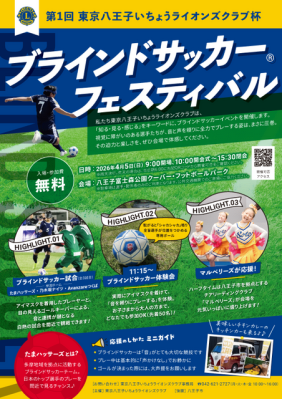 東京八王子いちょうLCが「知る・見る・感じる」をテーマにブラインドサッカーフェスティバルを開催します。ブラインドサッカー(全3試合)ブラインドサッカー体験会そしてハーフタイムパフォーマンスは地元八王子のチアリーディングクラブ「マルベリーズ」も登場。美味しいチキンカレーのキッチンカーも出店します。駐車場は関係者、障がい者(要予約)のみなのでご注意ください。小雨は決行ですが、荒天時の開催可否は当日朝6時に「いちょうHP]でご報告します。選手たちの全力でプレーする姿をぜひ会場で体感してください!配信元企業:一般社団法人東京地区ライオンズプレスリリース詳細へドリームニューストップへ