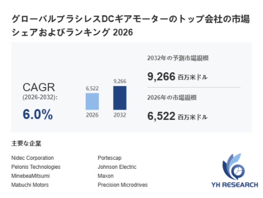 本記事は、YH Researchが発行したレポート「グローバルブラシレスDCギアモーターのトップ会社の市場シェアおよびランキング 2026」 を紹介しています。