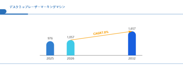 Global reports調査チームの最新レポート「グローバルデスクトップレーザーマーキングマシン市場規模、主要企業シェア、ランキング分析レポート【2026年版】」によると、グローバルデスクトップレーザーマーキングマシン市場は2025年の976百万米ドルから2032年には1657百万米ドルに成長し、2026年の市場規模は約1057百万米ドルと推計されており、2026-2032年のCAGR(年間成長率)が7.8%に達すると予測されている。