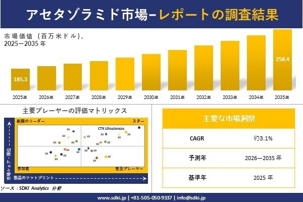 経営層の意思決定に役立つ戦略的洞察を得るため、アセタゾラミド市場調査レポートの試読版をご請求ください: https://www.sdki.jp/trial-reading-request-103780