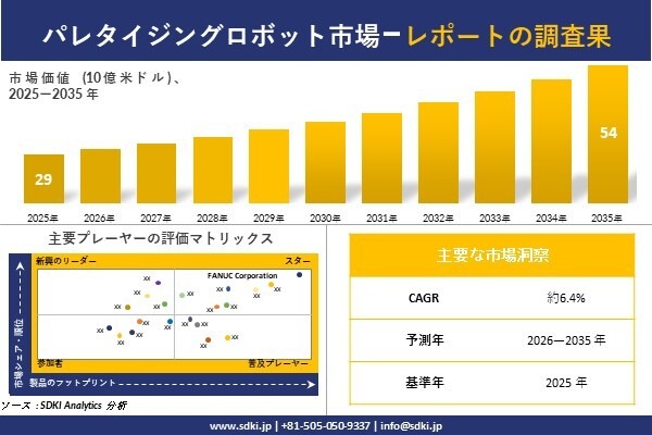 経営層の意思決定に役立つ戦略的洞察を得るため、パレタイジングロボット市場調査レポートの試読版をご請求ください: https://www.sdki.jp/trial-reading-request-590642156