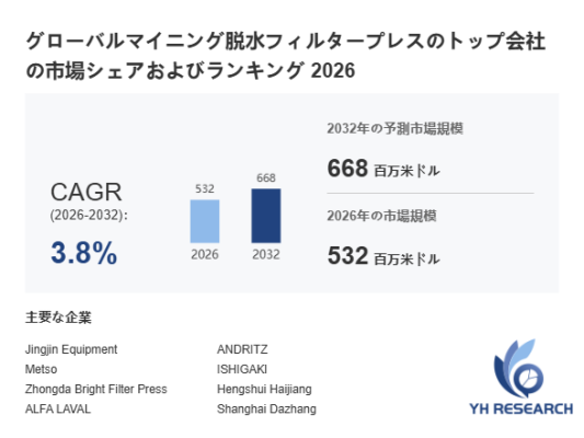本記事は、YH Researchが発行したレポート「グローバルマイニング脱水フィルタープレスのトップ会社の市場シェアおよびランキング 2026」 を紹介しています。