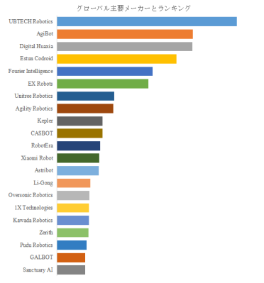 LP Informationの主要企業データによれば、ヒューマノイドロボットの主要製造業者にはUBTECH Robotics、AgiBot、Digital Huaxia、Estun Codroid、Fourier Intelligence、EX Robots、Unitree Robotics、Agility Robotics、Kepler、CASBOTなどが含まれる。2025年時点でトップ5の売上シェアは約40.0%、トップ10は約55.0%であり、カテゴリ立ち上がり期としては集中度が高い構図である。これは、機体単体の開発力に加え、量産設計、品質保証、導入支援、アプリケーションの作り込みまで含む総合力が参入障壁として機能していることを意味する。競争軸は「歩く」「掴む」といったデモ性能から、稼働率・安全性・保守性・現場適応の再現性へ移り、さらにソフトウェア更新の継続性と、複数現場へ横展開できるテンプレート化能力が勝敗を分ける局面へ入る。
