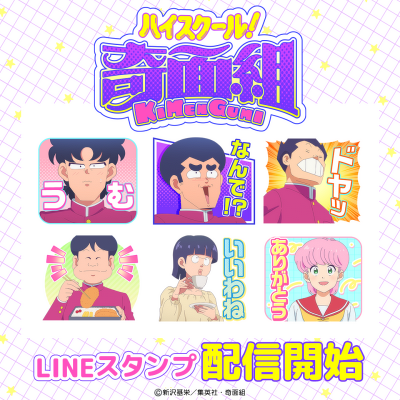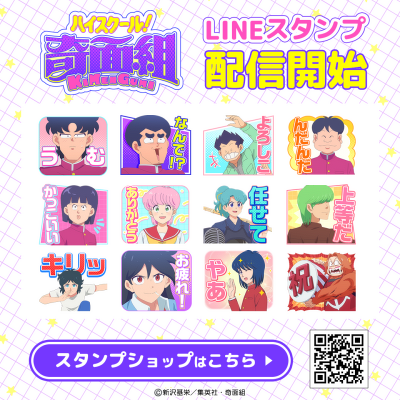 TVアニメ『ハイスクール!奇面組』初となるLINEスタンプがインクルーズの販売アカウントより配信開始!是非、LINEスタンプでもTVアニメ『ハイスクール!奇面組』の世界観をお楽しみください。