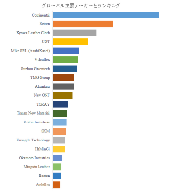 第13章では、自動車用合成皮革市場の主要メーカーについて、基本情報、製品仕様と用途、販売量、収益、価格設定、粗利益率、主力事業、最近の動向などの詳細情報を紹介します