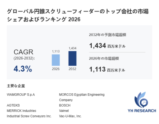 本記事は、YH Researchが発行したレポート「グローバル円錐スクリューフィーダーのトップ会社の市場シェアおよびランキング 2026」 を紹介しています。