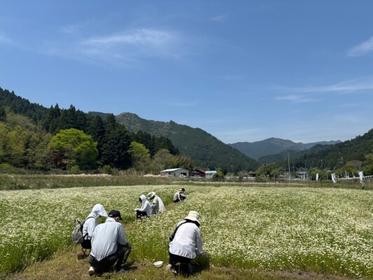・姫路市夢前町のカモミール畑での摘み取り体験
