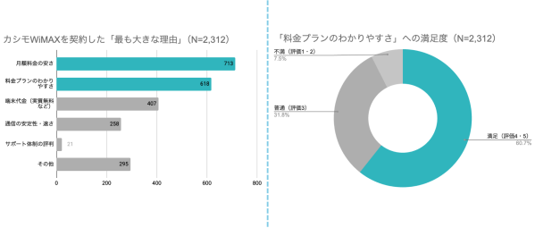 「数ヶ月後に料金が急に上がるのではないか」「割引期間が終わったら高くなるのでは」といった心配は一切不要です。 アンケートにおいて、カシモWiMAXを契約した最大の理由は「月額料金の安さ(30.8%)」、次いで「料金プランのわかりやすさ(26.7%)」でした。