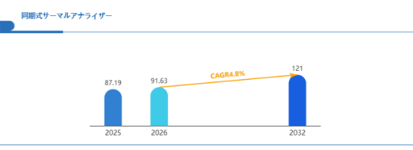 Global Reports調査チームの最新レポート「グローバル同期式サーマルアナライザー市場規模、主要企業シェア、ランキング分析レポート【2026年版】」によると、2026年の91.63百万米ドルから2032年には121百万米ドルに成長し、2026年から2032年の間にCAGRは4.8%になると予測されています。