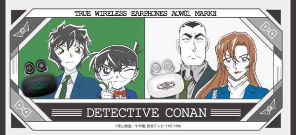 本コラボレーションモデルは、「萩原千速&横溝重悟」「江戸川コナン&世良真純」の2モデル、及び、昨年受注販売した「江戸川コナン&毛利小五郎モデル」「灰原哀モデル」「長野県警モデル」を「AOW01 MARKII」に機種変更&PKGリニューアルしたリバイバルモデルを加えた計5モデルをラインナップ。充電ケース天面に各キャラクターをイメージしたモチーフデザイン、左右ハウジングに各キャラクターを象徴するモチーフアイコンを配置。各キャラクターの新規録り下ろしボイスを搭載し、電源オンやオフ、ペアリング時やタップ音、ノイズキャンセリングモード時等、計23ワード(新規モデル)のボイスを楽しめます。