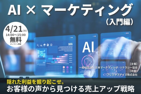 プレシャスデイズ株式会社は、一般社団法人 日本マーケティング・リテラシー協会(JMLA)との共催により、2026年4月21日(火)14:00~15:00、オンライン(Google Meet)にて無料セミナー「AI × 感性マーケティング~お客様の声から『深層心理』を分析し、売上アップ戦略を立案する~」を開催します。