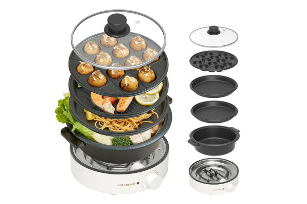 ちょうどいいサイズ感で、4種類のプレートが選べる! コンパクトながら本格派のホットプレート。平面・波型・深鍋・たこ焼きプレートを自由に組み合わせて、焼肉、鍋、たこ焼き…何でも作って楽しめる。