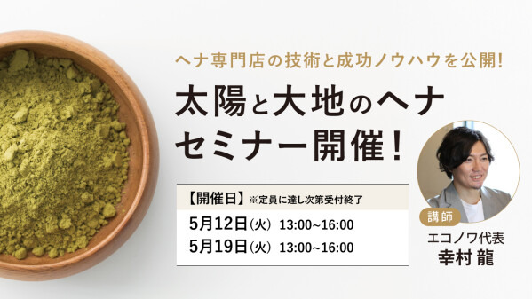 プロ向け美容材料の通信販売サイト「美通販」(https://www.bitsuhan.com/)が、短時間で染めるヘナやメニュー化について学べる「ヘナセミナー」を開催する運びとなりました。