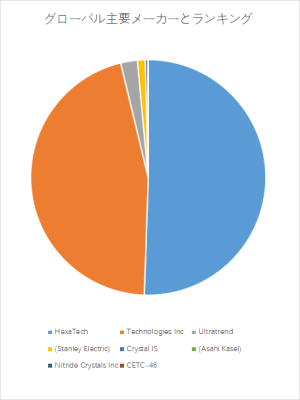 市場はすでに明確な上位企業群によって形成されている。HexaTechとTechnologies Incが市場シェアの大部分を占め、Ultrend、Stanley Electric、Crystal IS、Asahi Kaseiなどが続く構造である。HexaTechは大型単結晶基板の量産技術とデバイス統合実績で優位性を確立し、Technologies Incは高品質化・低欠陥化技術による差別化を進めている。両社は共同開発や技術ライセンス供与を通じて、市場支配力をさらに強化している。