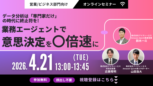 2026年4月21日(火)に、「データ分析は「専門家だけ」の時代に終止符を!業務エージェントで意思決定を〇倍速に」を開催いたします。
