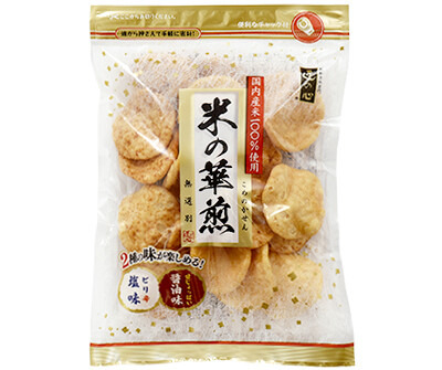 『米の華煎 無選別』は、国内産うるち米100%使用の生地を丁寧に揚げ、パリッとサクサクとした軽い食感に仕上げた揚げ煎餅です。一袋に「ピリ辛塩味」と「甘じょっぱい醤油味」の二つの味をアソートした詰合せで、食べ比べながら最後まで飽きずにお楽しみいただけます。また、開封後も新鮮さを保てる便利なチャック袋を採用しました。