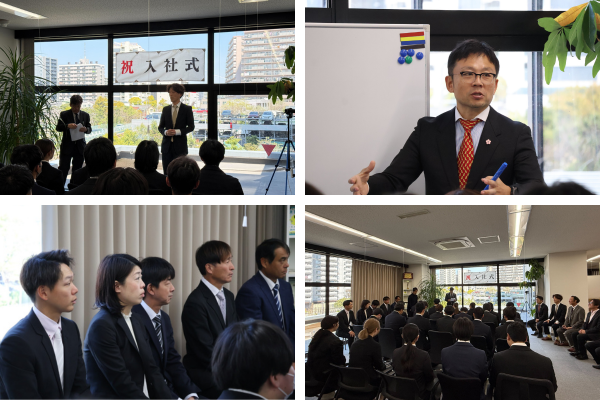 入社式はグループ企業の株式会社ルーセントアスリートワークス、明日香野(明日香食品株式会社)、株式会社ウェッジホールディングス、常盤ゴム株式会社と合同で開催。東京都江東区の株式会社ウェッジホールディングス本社にて行なわれた合同入社式に、各社の新入社員あわせて24名が参加しました。