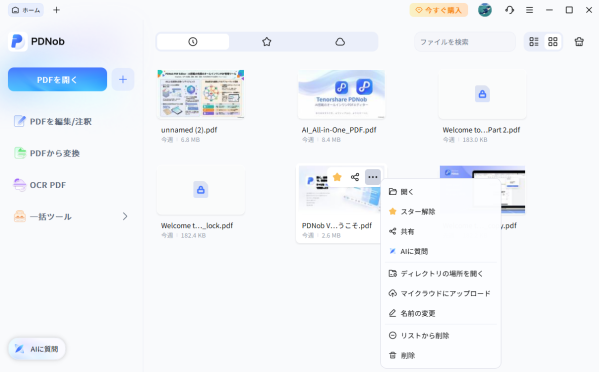 新しいホームインターフェースでは、編集・変換・OCR・一括処理などの主要機能へワンクリックでアクセス可能。