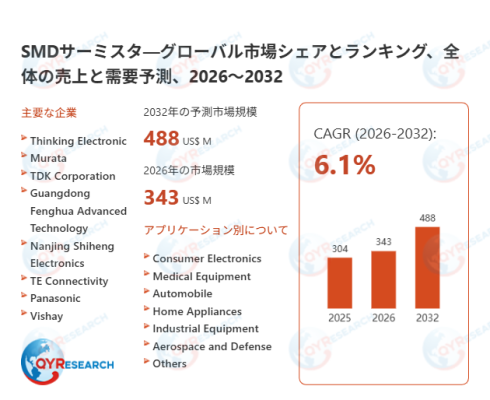 本記事は、QY Research発行のレポート「SMDサーミスタ―グローバル市場シェアとランキング、全体の売上と需要予測、2026~2032」に基づき、市場動向および競合分析の概要を解説します。