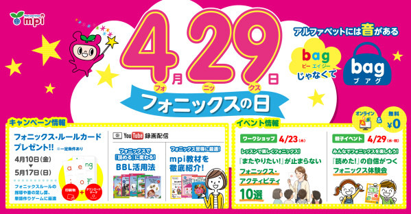 「4月29日はフォニックスの日」特設サイト https://www.mpi-j.co.jp/phonics_campaign/