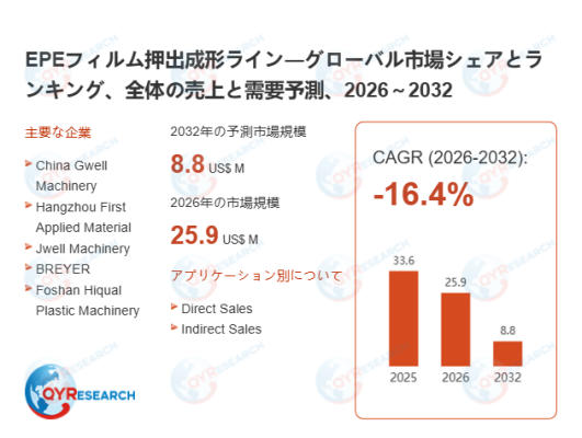 本記事は、QY Research発行のレポート「EPEフィルム押出成形ライン―グローバル市場シェアとランキング、全体の売上と需要予測、2026~2032」に基づき、市場動向および競合分析の概要を解説します。