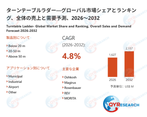 本記事は、QY Research発行のレポート「ターンテーブルラダー―グローバル市場シェアとランキング、全体の売上と需要予測、2026~2032」に基づき、市場動向および競合分析の概要を解説します。