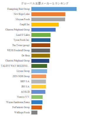 LP Informationのトップ企業研究センターによると、フィードの世界的な主要製造業者には、Guangdong Haid Group、New Hope Liuhe、Muyuan Foods、Cargill Inc、Charoen Pokphand Group、Land O' Lakes、The Twins (group)、Tyson Foods Inc.、WENS Foodstuff Group、De Heusなどが含まれている。2024年、世界のトップ10企業は売上の観点から約11.0%の市場シェアを持っていた。