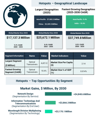 光トランシーバーはコンポーネント分野で最も高い収益増加が見込まれ、サービス分野ではネットワーク設計サービスが成長を主導すると予測されています。