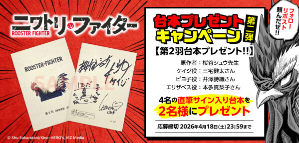 アニメ放送開始記念の台本プレゼントキャンペーン第二弾が開催中です。原作者の桜谷シュウ先生やメインキャスト3名の「直筆サイン入り台本」が抽選で2名様にあたる豪華企画。アフレコの熱量が感じられるお宝が手に入る貴重な機会をお見逃しなく!