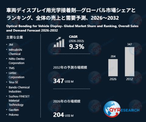 本記事は、QY Research発行のレポート「車両ディスプレイ用光学接着剤―グローバル市場シェアとランキング、全体の売上と需要予測、2026~2032」に基づき、市場動向および競合分析の概要を解説します。