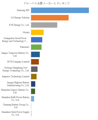 LP Informationのトップ企業研究センターによると、ハイレートバッテリー市場のグローバル主要製造業者にはSamsung SDI、LG Energy Solution、EVE Energy Co., Ltd.、Murata、Guangzhou Great Power Energy and Technology Co., Ltd.、Panasonic、Jiangsu Tenpower Battery Co., Ltd.、BYD Company Limited、Sichuan Changhong New Energy Technology Co., Ltd.、Amperex Technology Limitedなどが含まれる。2025年においてトップ5企業が売上ベースで約67.0%の市場シェアを持ち、トップ10企業では約83.0%に達している。この集中度は、ハイレート特性を成立させる高度な材料設計、積層化技術、セル構造設計、熱管理・安全回路統合などの複合的能力が、参入障壁として機能していることを示す。上位企業は、自社の材料技術とプロセス制御、グローバルな供給体制を活かしつつ、用途別ニーズに合わせた製品ポートフォリオを整えている。それぞれの企業は高倍率放電が要求される用途での認定・採用実績を持ち、顧客基盤の拡大を支える設計・供給体制を築いている点が、競争配置の特徴である。