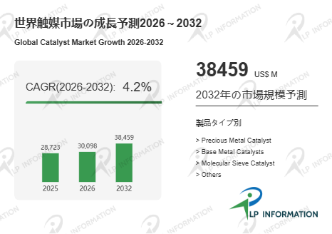 LP Information調査チームの「世界触媒市場の成長予測2026~2032 」(https://www.lpinformation.jp/reports/587974/catalyst)によれば、2026年から2032年の予測期間におけるCAGRは4.2%であり、2032年に市場規模は384.59億米ドルへ到達すると見込まれている。この数値が示すのは、触媒が単なる材料市場ではなく、化学・エネルギー・環境の各産業を横断して稼働を支える基盤インフラに近い性格を持つ点である。景気循環や個別用途の波はあっても、反応プロセスの存在そのものが需要の下支えとなり、市場は急騰よりも持続的な積み上げで拡大する構造にある。CAGR4.2%という成長率は過度な期待と失望の振幅が小さいことを意味し、長期の設備投資や技術ロードマップと整合しやすい。一方で、2032年に向けて市場規模が384.59億米ドルへ広がることは、触媒が工程効率や品質を通じて付加価値を生み続ける余地が十分に残ることも示唆するのである。