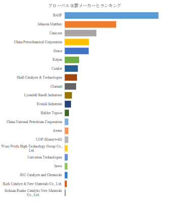 第13章では、触媒市場の主要メーカーについて、基本情報、製品仕様と用途、販売量、収益、価格設定、粗利益率、主力事業、最近の動向などの詳細情報を紹介します