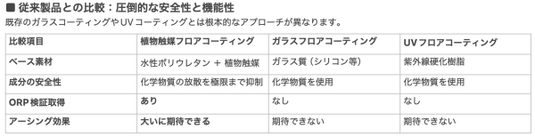 ウェルネスや未病対策が注目され「健康住宅」が普及する一方で、建材の接着剤や日常の清掃に用いられる合成化学物質による曝露リスクは依然として残されています。現状のフロアコーティング業界やペット関連企業の多くは、この化学物質リスクに対する配慮が乏しく、除菌・消臭を目的とした化学物質依存の製品が蔓延しているのが実態です。