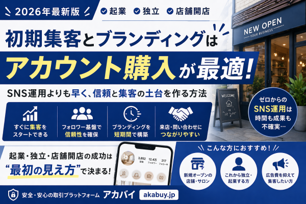 SNSアカウント売買サイト、アカバイ( https://akabuy.jp )を運営する合同会社MYASIA Entertainment(本社:東京都)は、このたび、起業・独立・店舗開店におけるSNS運用と初期集客の関係について、実務上の相談傾向をもとに整理し公開いたします。近年は「起業 SNS集客」「店舗 集客 インスタ」「独立 ブランディング 方法」「SNS運用 初期 集客」などの検索が増加しており、開業初期からSNSを活用した集客・認知獲得の重要性が高まっています。