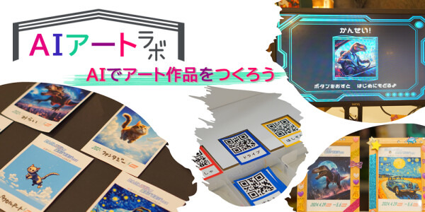 4つのキーワードカードを組み合わせてAIアートを生成。AIアートはポストカードに印刷してお渡しします。