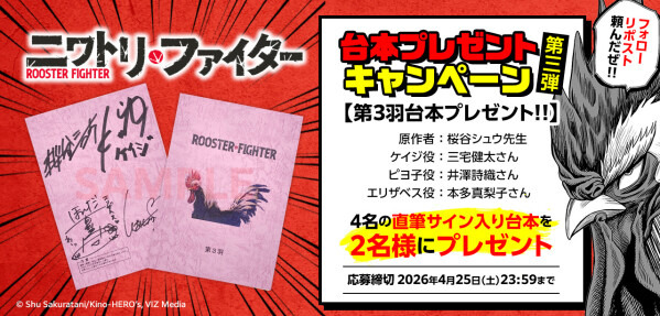 アニメ化を記念した連続企画も、ついに今回がラストチャンス。原作者の桜谷シュウ先生やメインキャスト3名の「直筆サイン入り台本」を抽選で2名様にプレゼントいたします。現場の熱気を直接感じられる貴重な台本です。皆様の熱いご応募をお待ちしております!