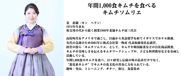 「サランチェ」のキムチは、代々受け継がれてきた伝統製法と素材の持つ自然な旨味を最大限に引き出すことにこだわっております。おすすめの摂取量は1日60g。毎日の食卓に、少しの贅沢と健康的な彩りを添えるお手伝いができれば嬉しいです。これからも、皆様の食卓が笑顔になる、そして喜んでいただける味と品質を追求してまいります。