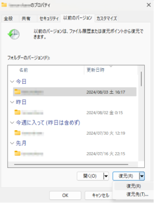 復元したいファイルにチェックを入れ、右下の「復元」をクリックします。